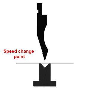 The position where the upper beam transitions from rapid descent to slow descent (working feed state) is referred to as the speed change point.
