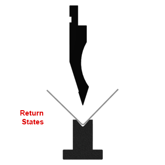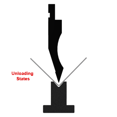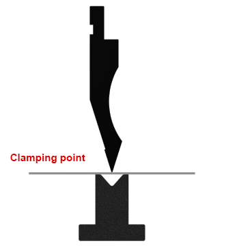 The position where the upper die makes contact with the workpiece placed on the lower die is referred to as the clamping point. At this stage, the sheet has not yet undergone deformation and is held firmly in place, preventing any movement. The clamping point is often used in applications involving backgauge auxiliary retraction or robotic bending operations.