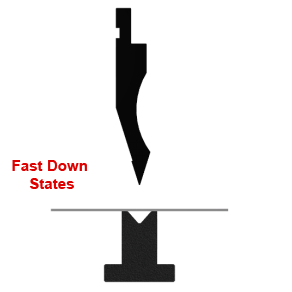 The rapid descent of the upper beam, moving toward the speed change point, is referred to as fast down state. Although fast down cannot ensure precise positioning of the upper beam, it allows the beam to descend at a high speed, effectively improving the overall bending efficiency.